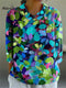 Women's Vintage Flowers Art Print Casual Linen V-neck Shirt