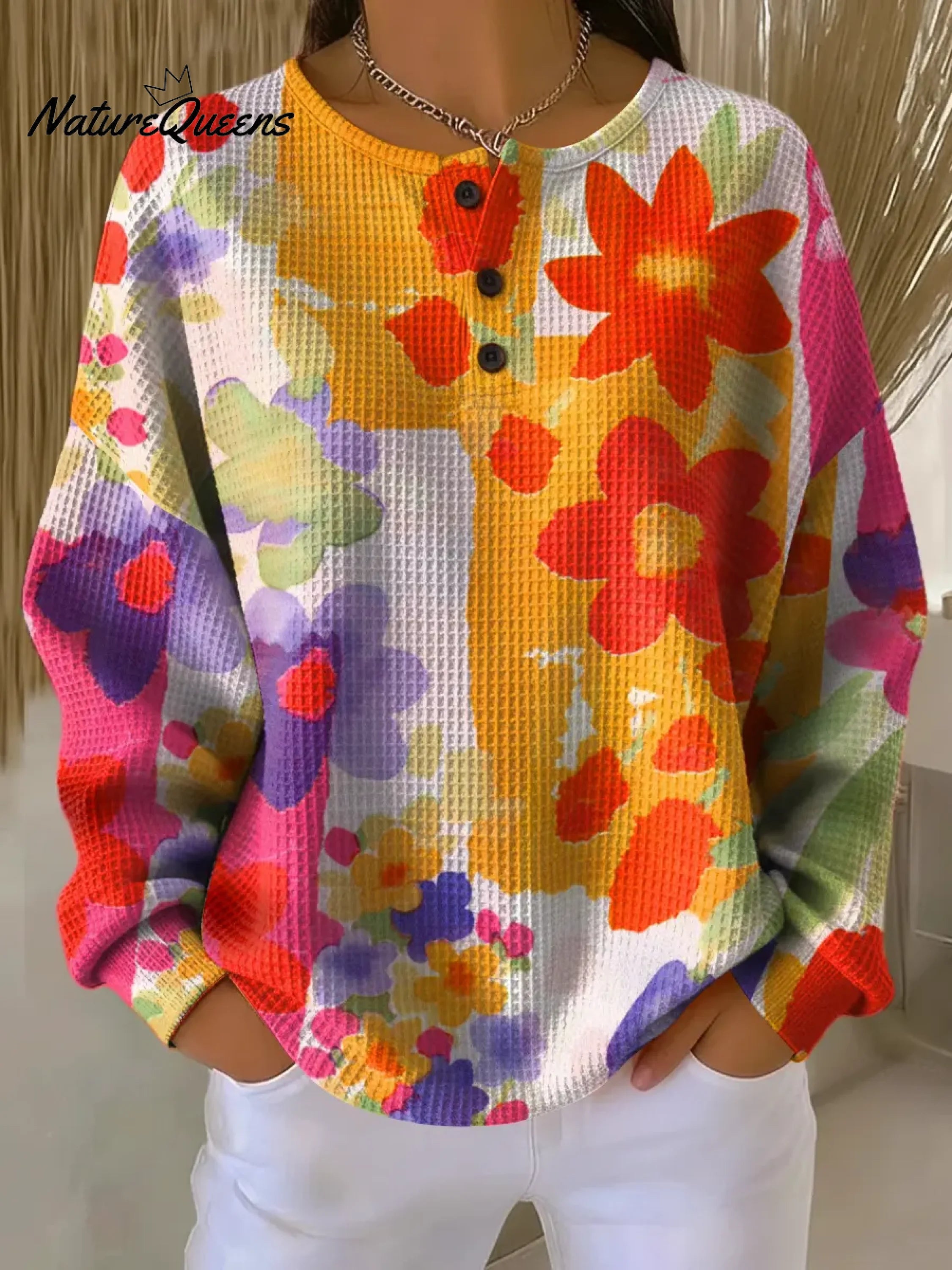 Women's Vintage Flowers Pattern Art Print Casual Waffle Sweatshirt