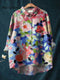 Women's Vintage Lovely Tulips Art Print Casual Cotton And Linen Shirt