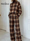 Women's Vintage Plaid Art Print Casual Knitted Cotton Top Pants Suit