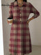 Women's Winter Snowflake And Plaid Decorative Pattern Casual Shirt Collar Long Sleeve Dress