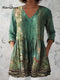 Women's Art Color Dot Print V-Neck Cotton and Linen Top