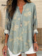 Women'sRetro Art Print Casual Linen V-neck Shirt