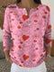 Valentine's Day Heart-shaped Checkered Decorative Pattern Casual Cardigan Collar Long Sleeve Sweater