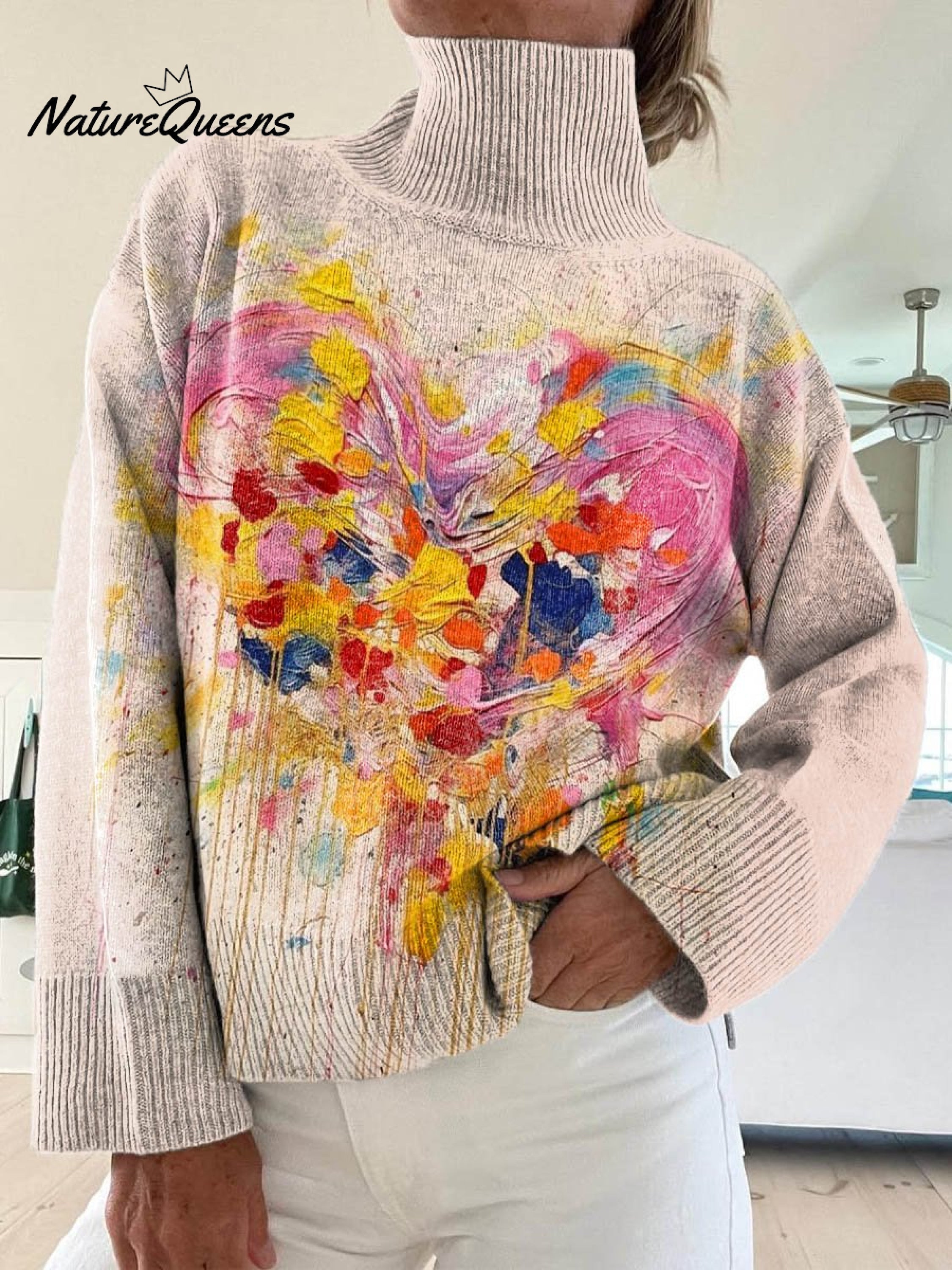 Valentine's Day Love Art Print Knit Turtleneck Pullover Sweater