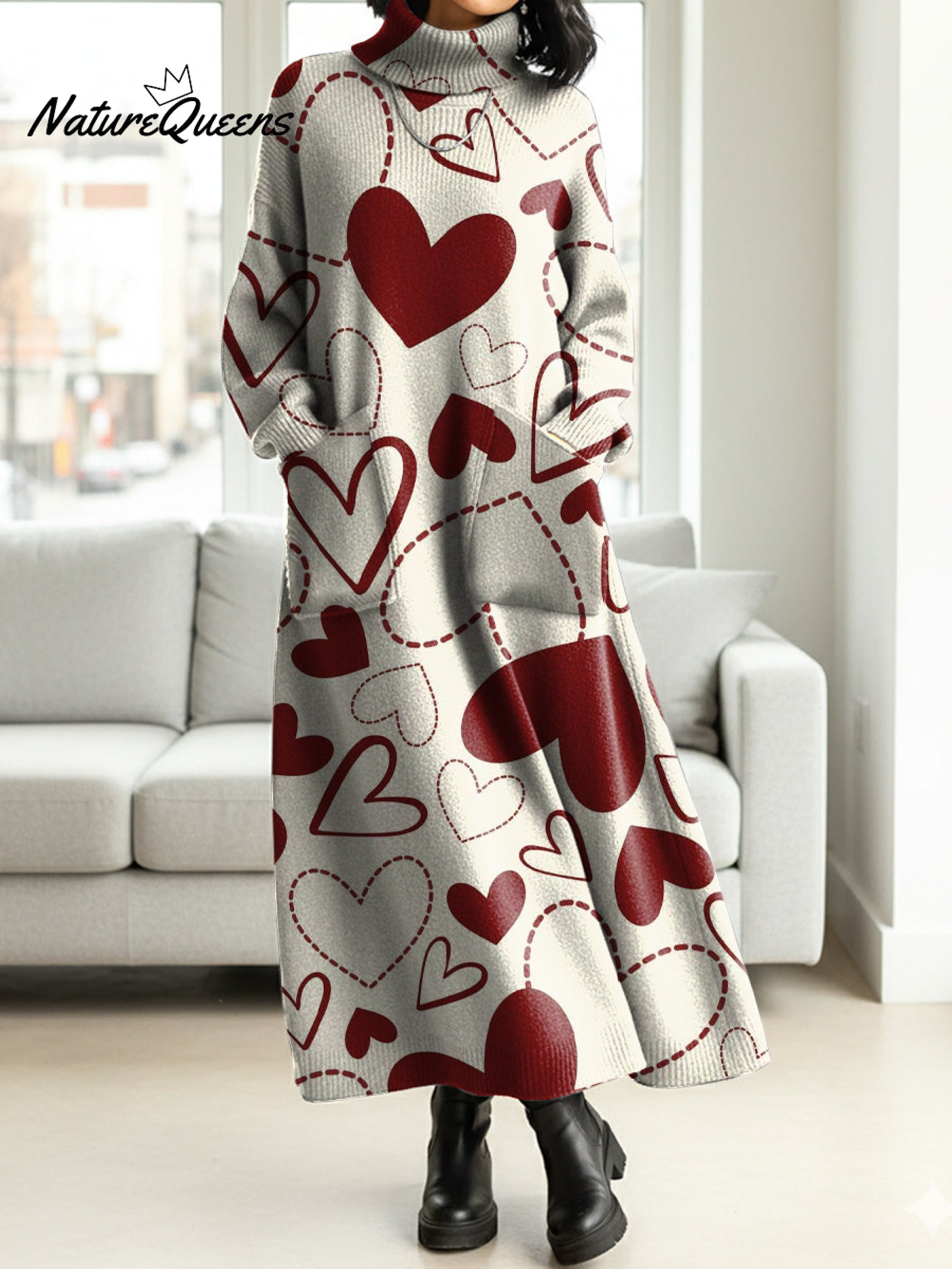 Women's Heart-shaped Print Valentine's Day Casual Cotton Knitted Dress