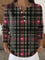 Women's Retro Plaid Heart Art Print Valentine's Day Casual Sweater