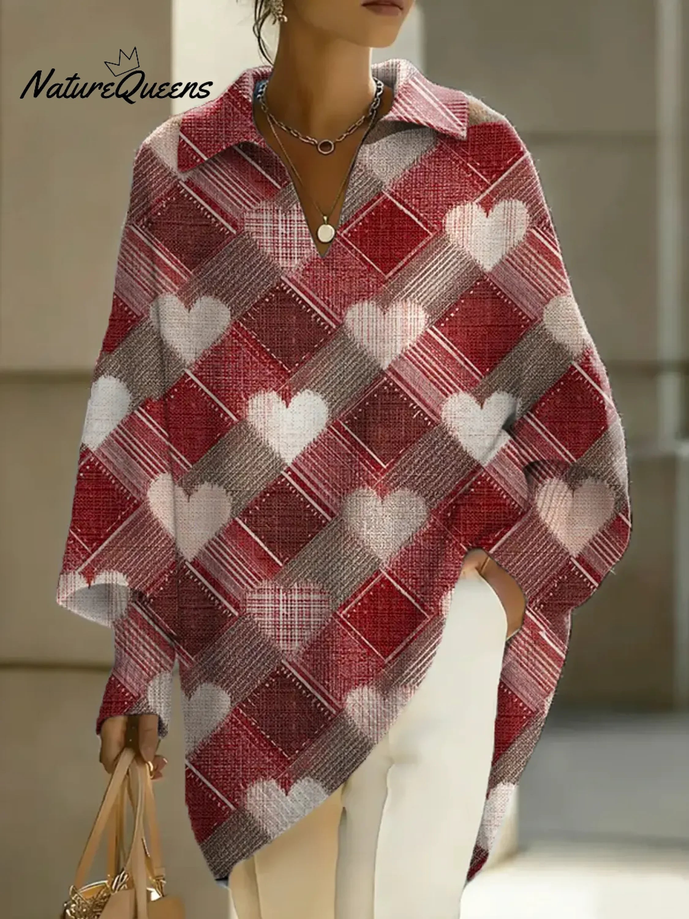 Women's Valentine's Day Heart Art Print Casual Knit Sweater