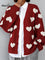 Women's Valentine's Day Heart-Patterned Knitted Cardigan