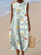 Women's Vintage Symmetry Flower Art Print Sleeveless Cotton Pocket Wrap Dress
