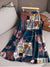 Women's Abstract Floral Plaid Splicing Painting Art Print Cotton Skirt