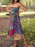 Women's Retro Collage Print Elastic Waist Casual Cotton and Linen Skirt Strapless Dress Two-Way Dress