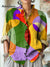 Women's Abstract Colorful Geometric Color Block Painting Art Print Casual Cotton And Linen Ruffle Shirt