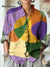 Women's Abstract Colorful Geometric Color Block Painting Art Print Casual Cotton And Linen Ruffle Shirt