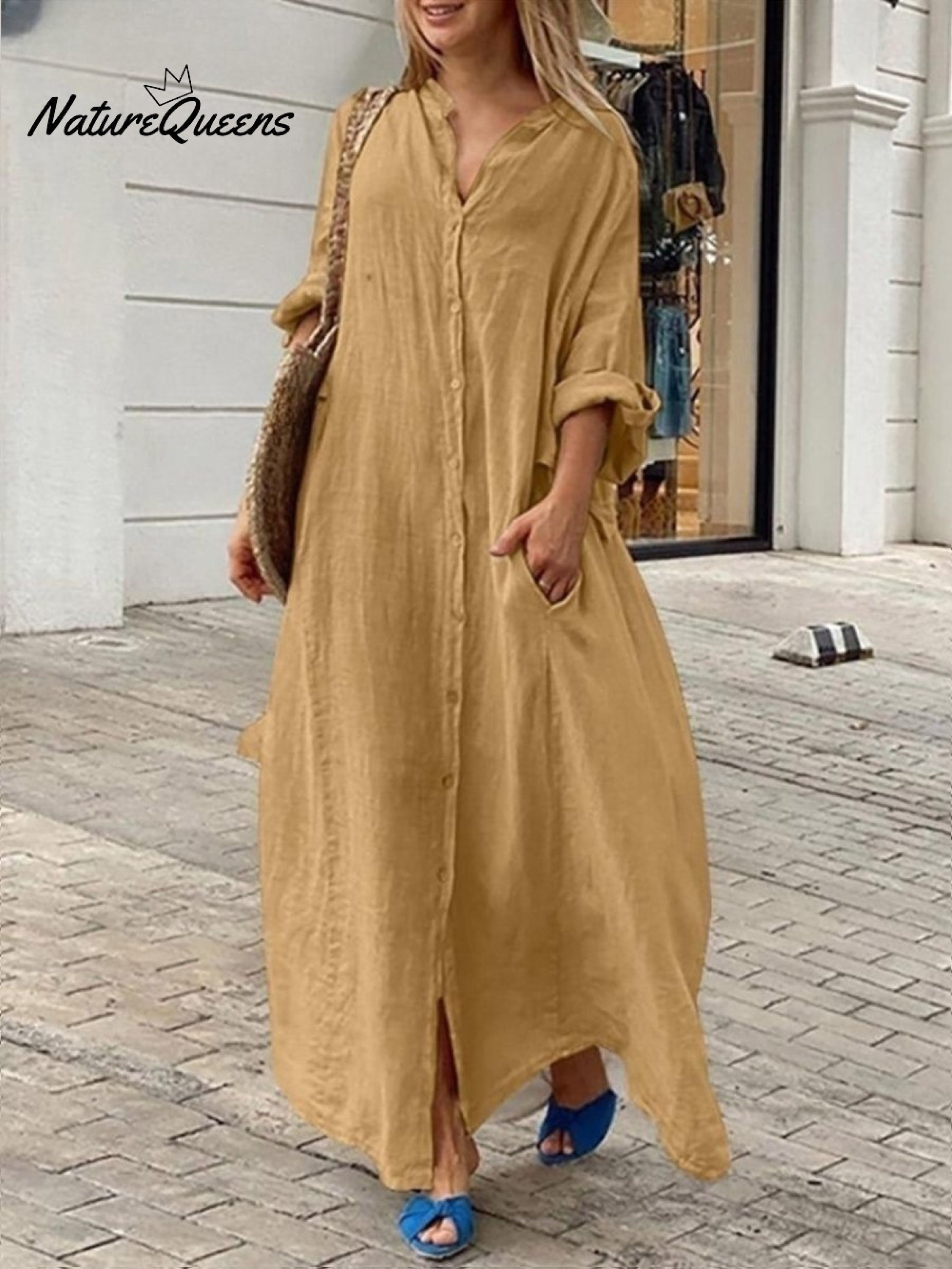 Casual Cotton and Linen Shirt Dress
