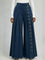 Casual Denim Wide-leg Pants With Metal Ring Embellishments.