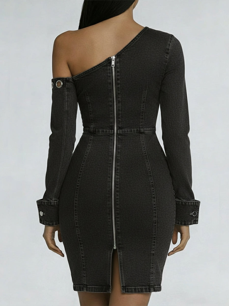 Casual Off-the-shoulder Denim DressCasual Off-the-shoulder Denim Dress