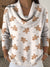 Festive Gingerbread Man Decorations Women's Casual Swing Collar Long Sleeve Sweater