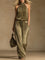 Leopard Print Sleeveless Top And Velvet Trousers Set