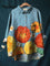 Oil Painting Blue Sky Flowers Printed Cotton And Linen Shirt