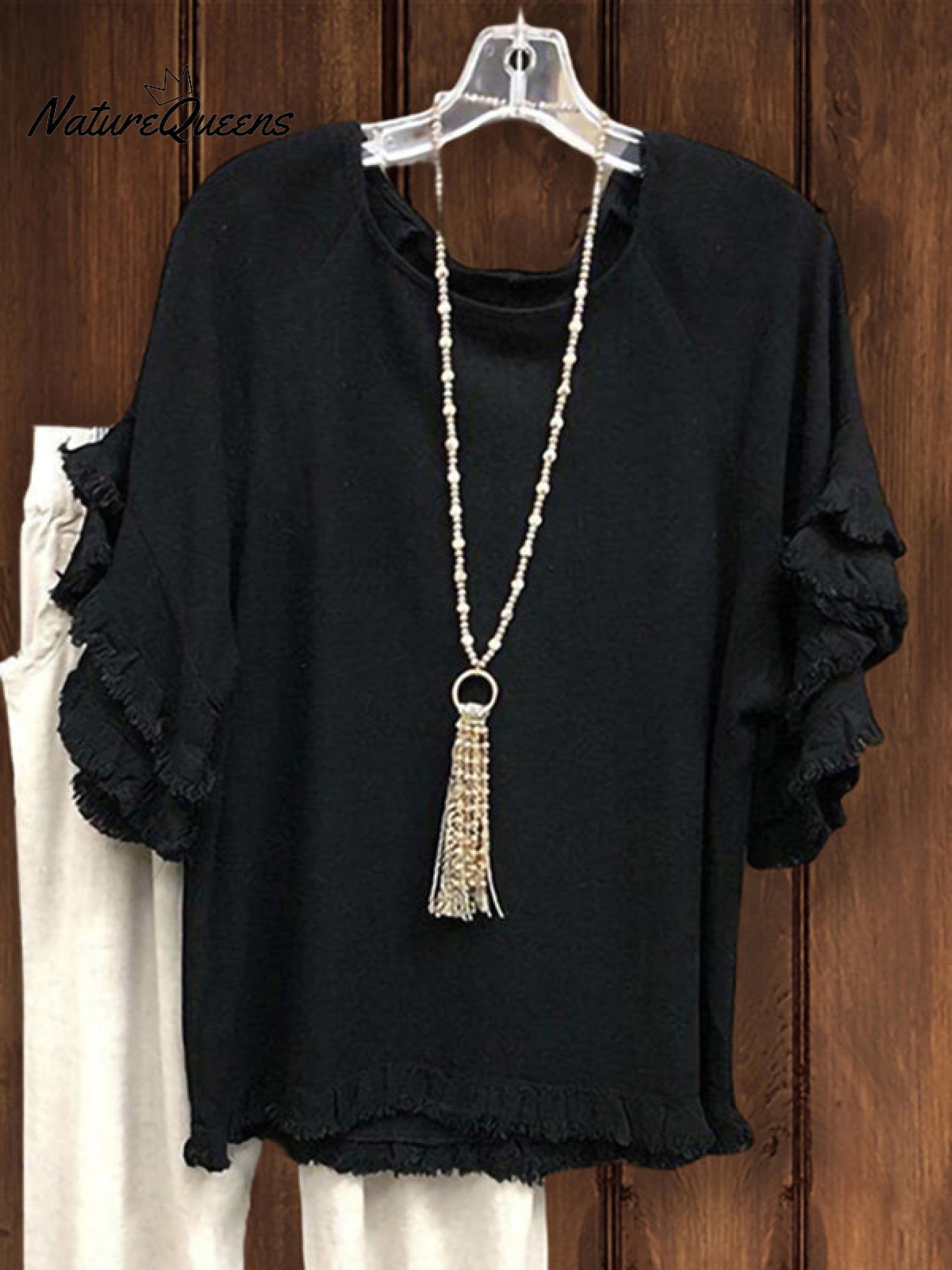Double Ruffle Short Sleeve Round-Neck Top