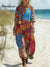 Women's Flying Bees Embroidery Pattern Casual Cotton Wide Leg Jumpsuit