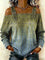 Women‘s Gradient Ethnic Pattern Print Casual Cotton Denim Shirt