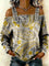 Women‘s Vintage Pattern Art Print Casual Cotton Denim Shirt