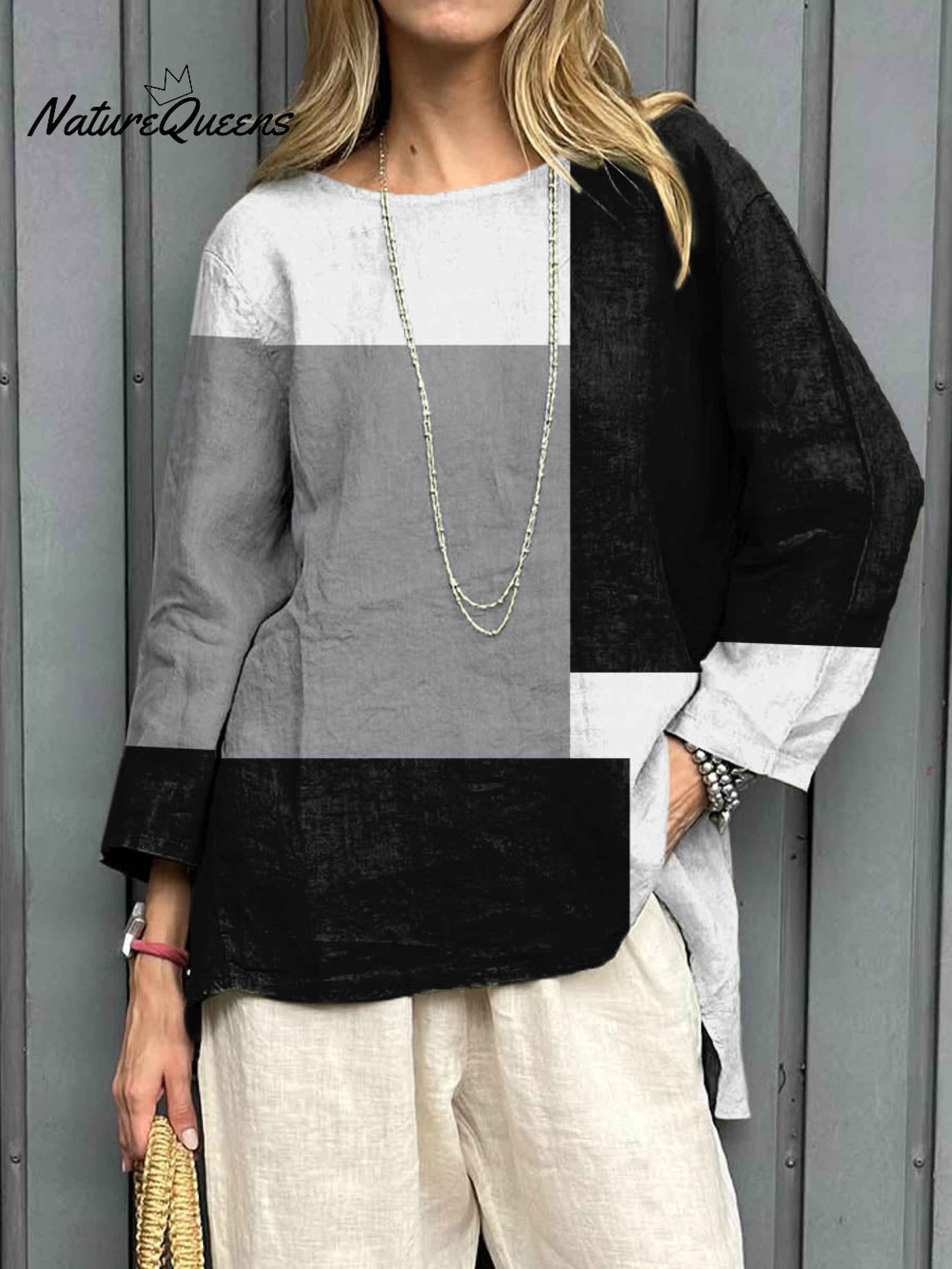 Women's Abstract Geometric Pattern Art Print Casual Cotton Linen Shirt