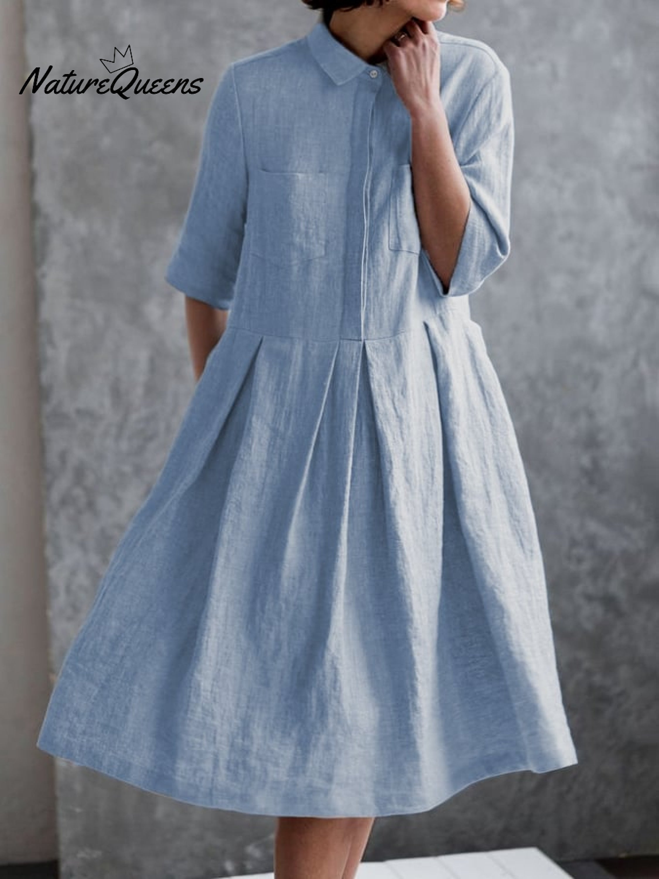 Women‘s Casual Elegant Double Pockets Half-Sleeve Dress