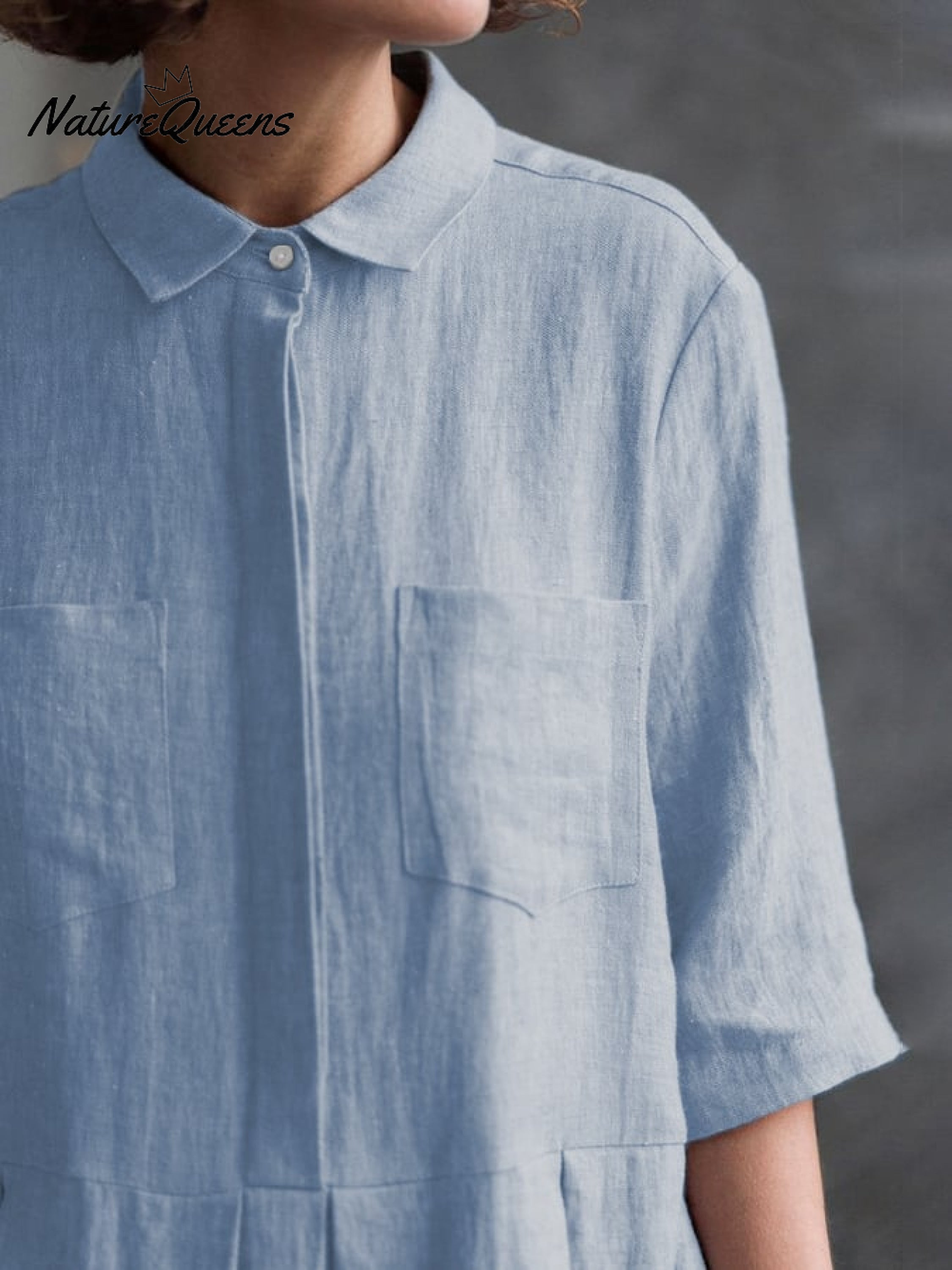 Women‘s Casual Elegant Double Pockets Half - Sleeve Dress Light Blue / SWomen‘s Casual Elegant Double Pockets Half - Sleeve Dress