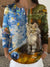 Women's Christmas Cat Art Print Buttoned Cardigan Sweater