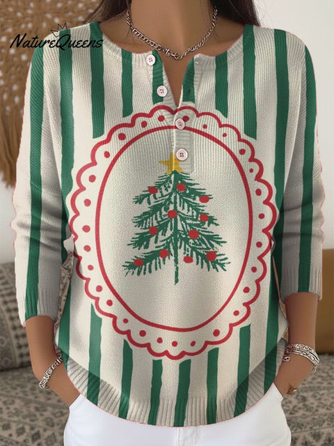 Women's Christmas Tree Pattern Art Print Buttoned Cardigan Sweater