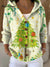 Women's Cute Winter Christmas Tree Gift Drawing Art Print Casual Hooded Button Sweater