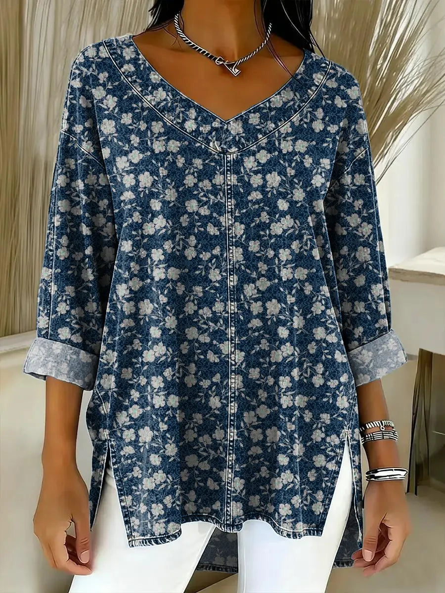 Women's Floral Pattern Art Print Casual Denim Shirt