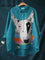 Women's Funny BullArt Print Casual Cotton And Linen Shirt