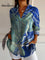 Women's Hand Painted Dark Blue Ocean Art Print Casual Cotton Shirt