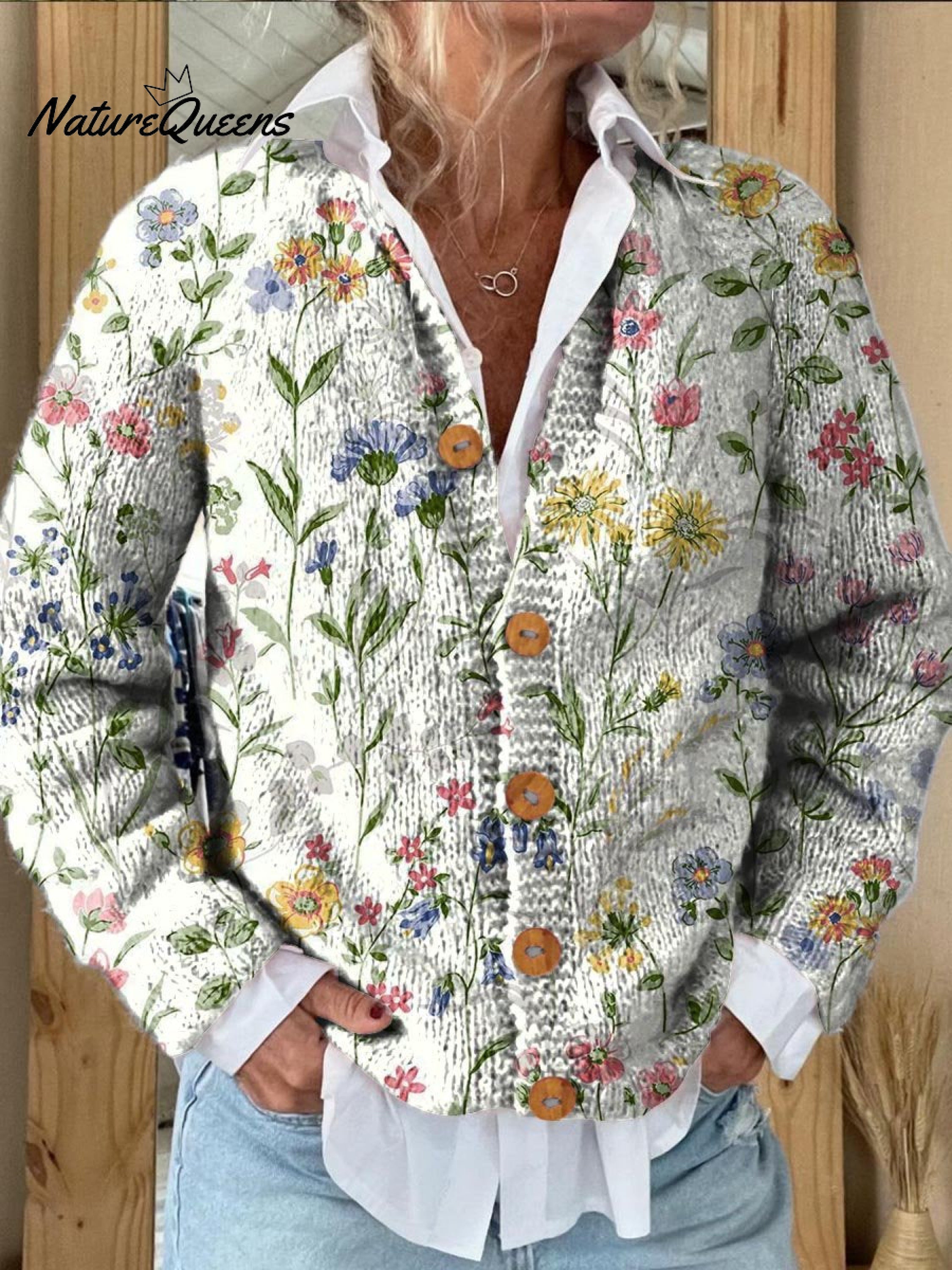 Women's Lovely Floral Art Print Buttoned Cardigan Sweater
