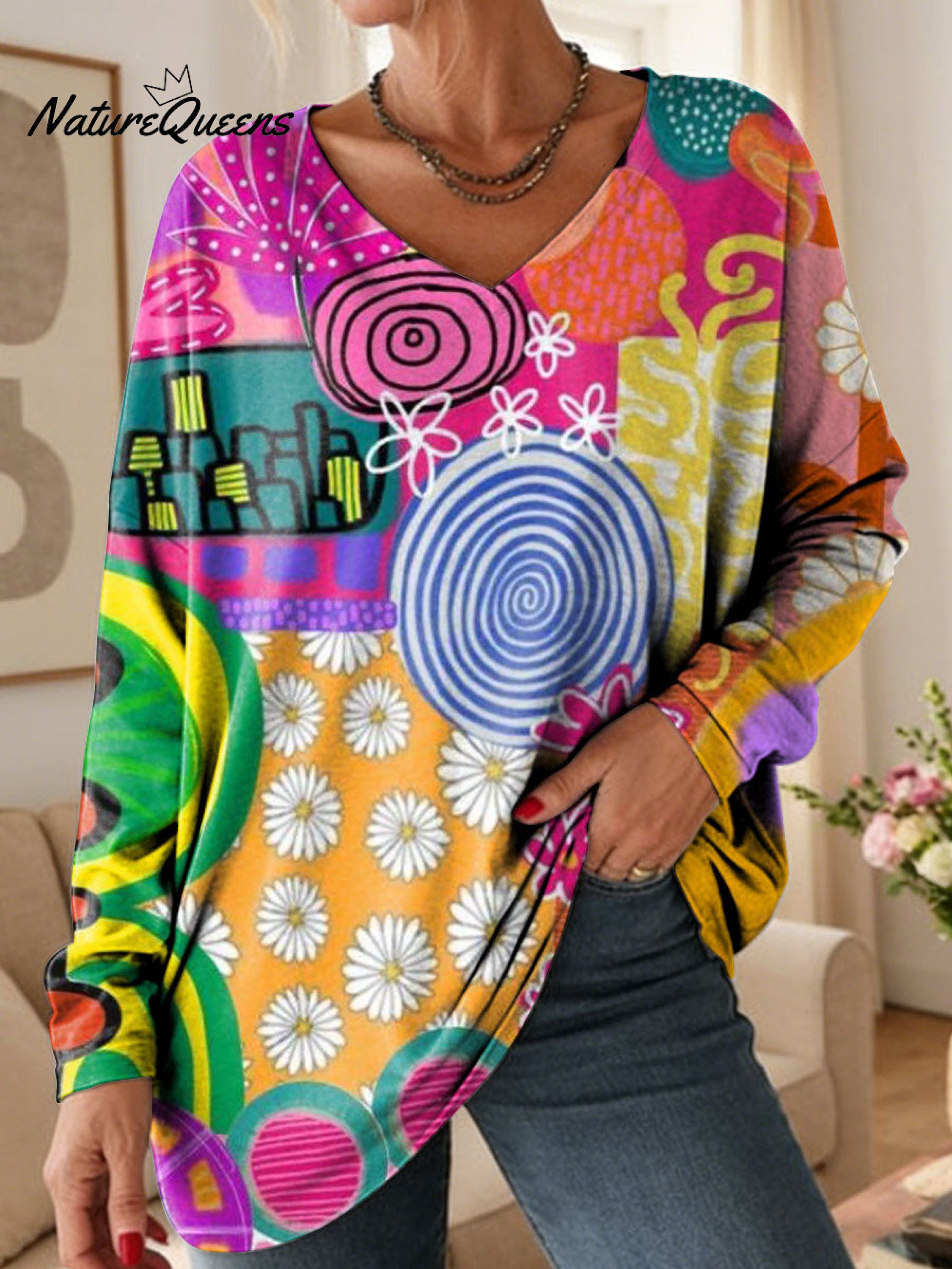 Women's Lovely Floral Flowers Pattern Art Print V-neck Casual Cotton T-shirt