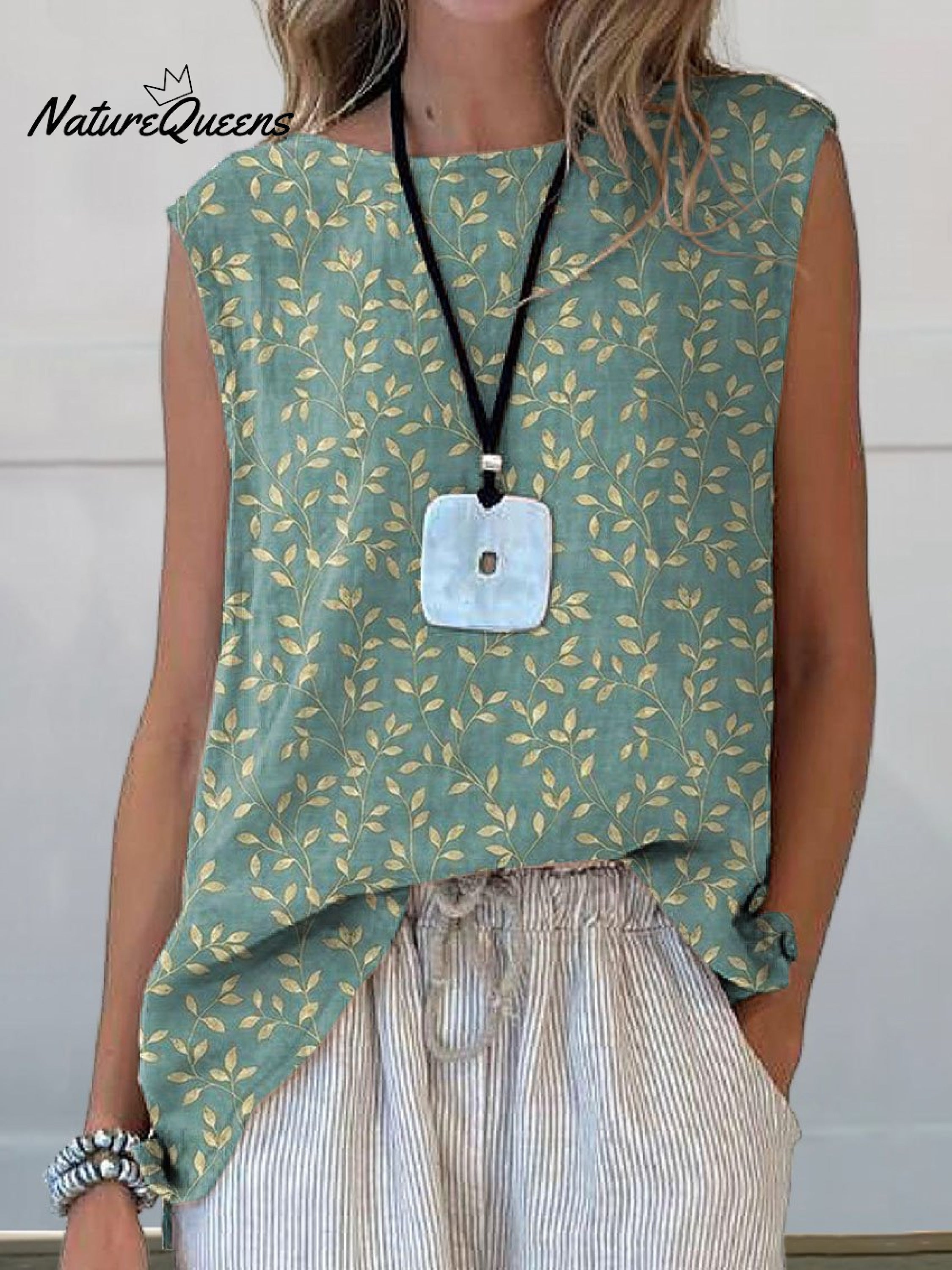 Women's Retro Elegant Floral Art Print Casual Cotton And Linen Tank Top