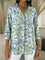 Women's Retro Gradient Flowers Floral Art Casual Denim V-neck Ruffled Shirt