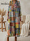 Women's Retro Patchwork Pattern V-neck Knit Dress