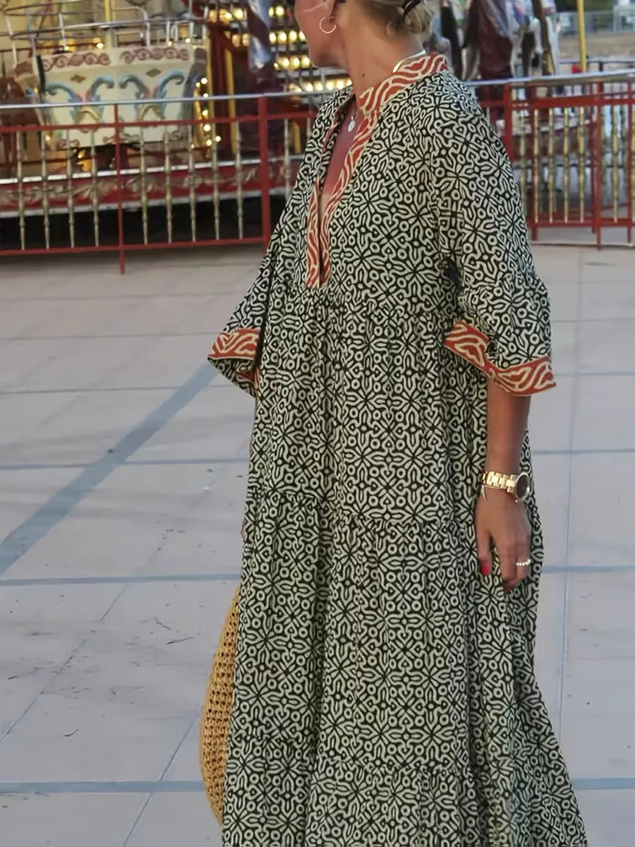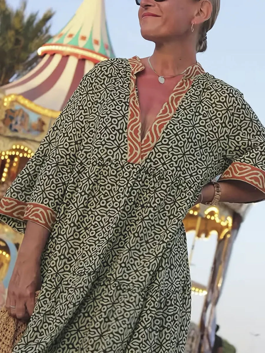 Women's Retro Pattern Art Print Casual Cotton Dress