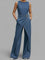 Women's Round Neck Sleeveless Casual Loose Denim Wide-leg Jumpsuit