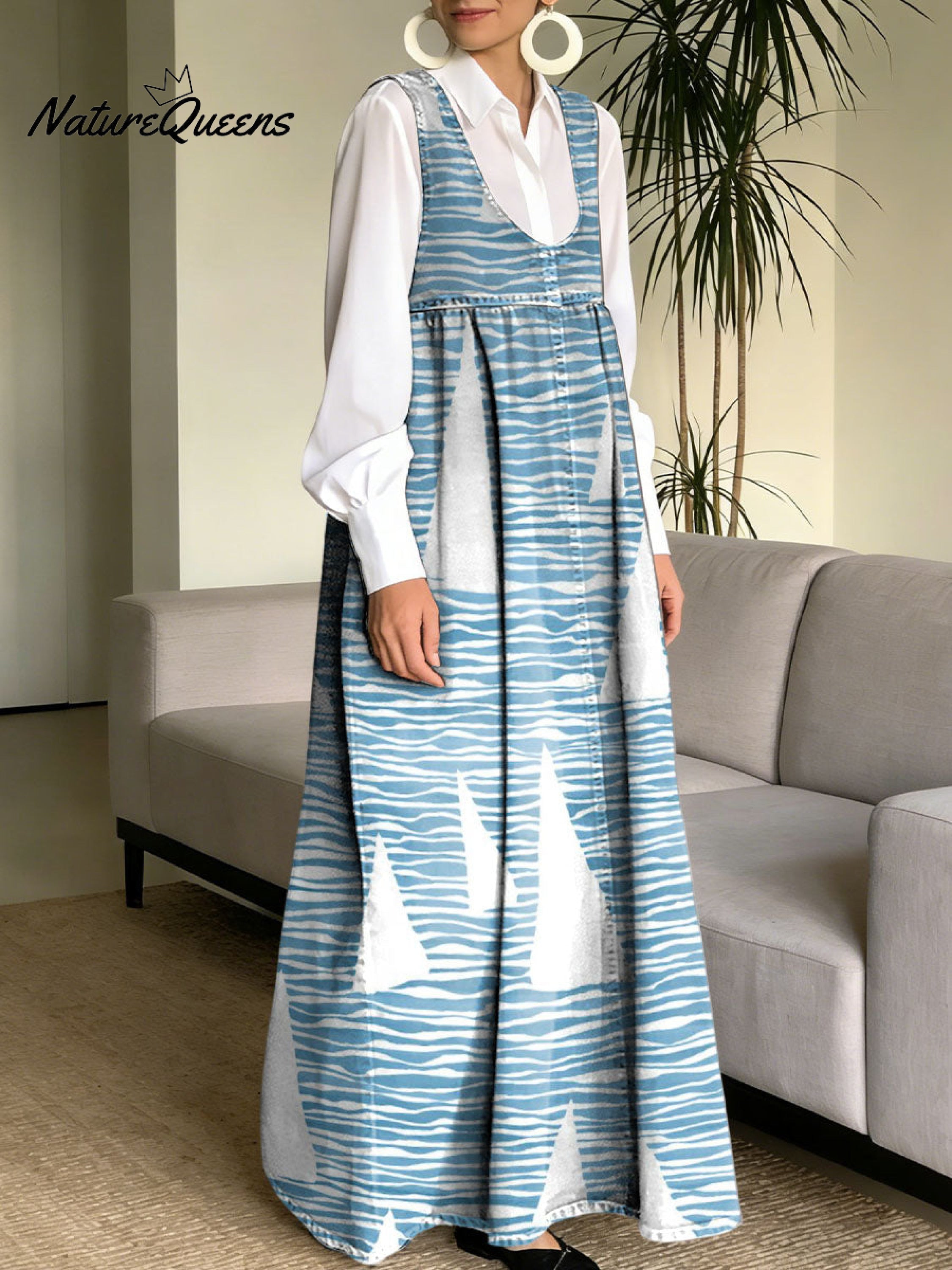 Women's Sailing Ship Landscape Decorative Patterns Casual Square Collar No Sleeve Dress