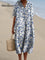 Women's Small Blue Flowers Watercolor Splash Fluid Art Print Flowy Dress
