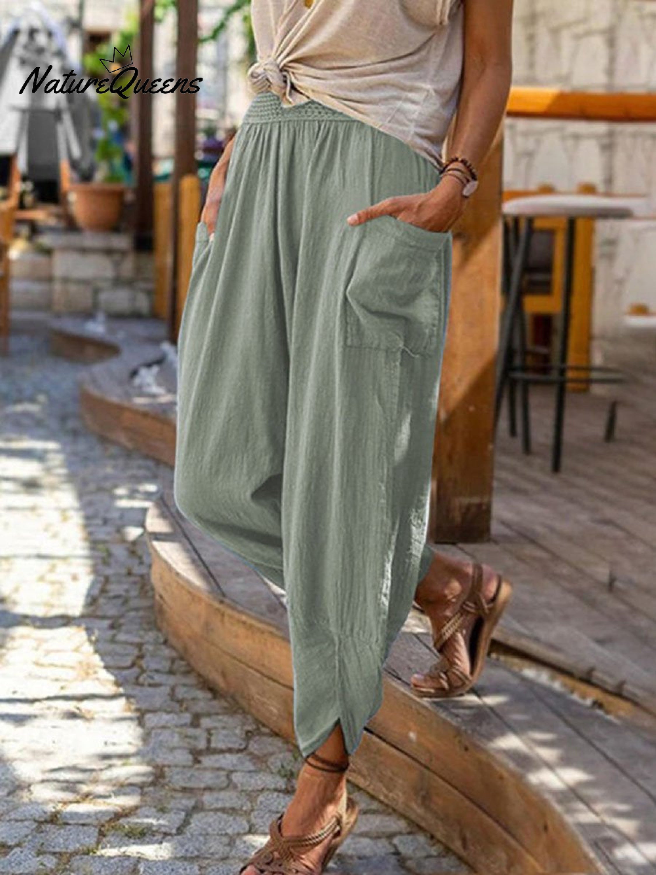 Women's Solid Color Loose Elegant Casual Simple Cotton And Linen Pants