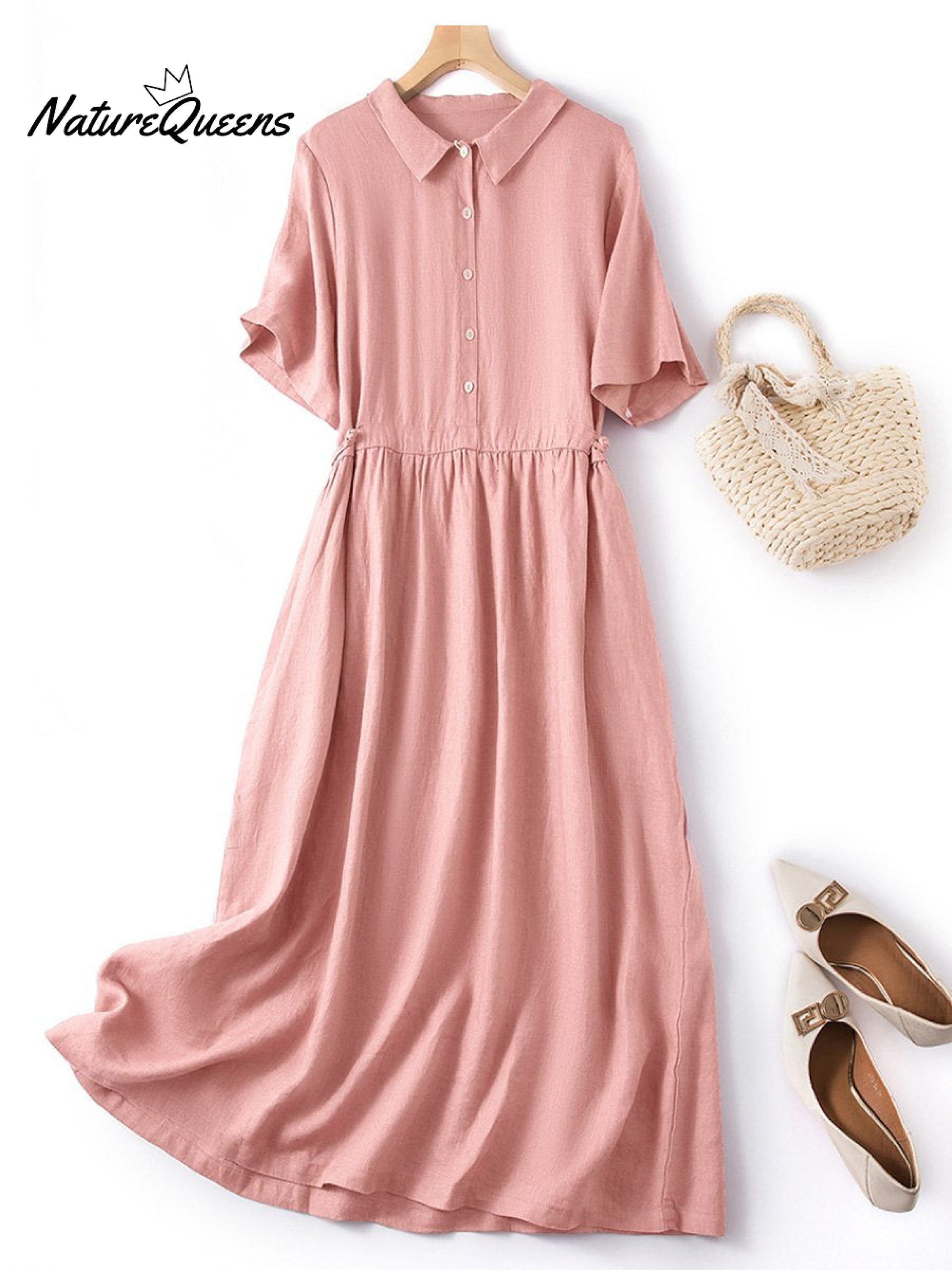 Women's Spring and Summer Short Sleeve Shirt Collar Retro Dress