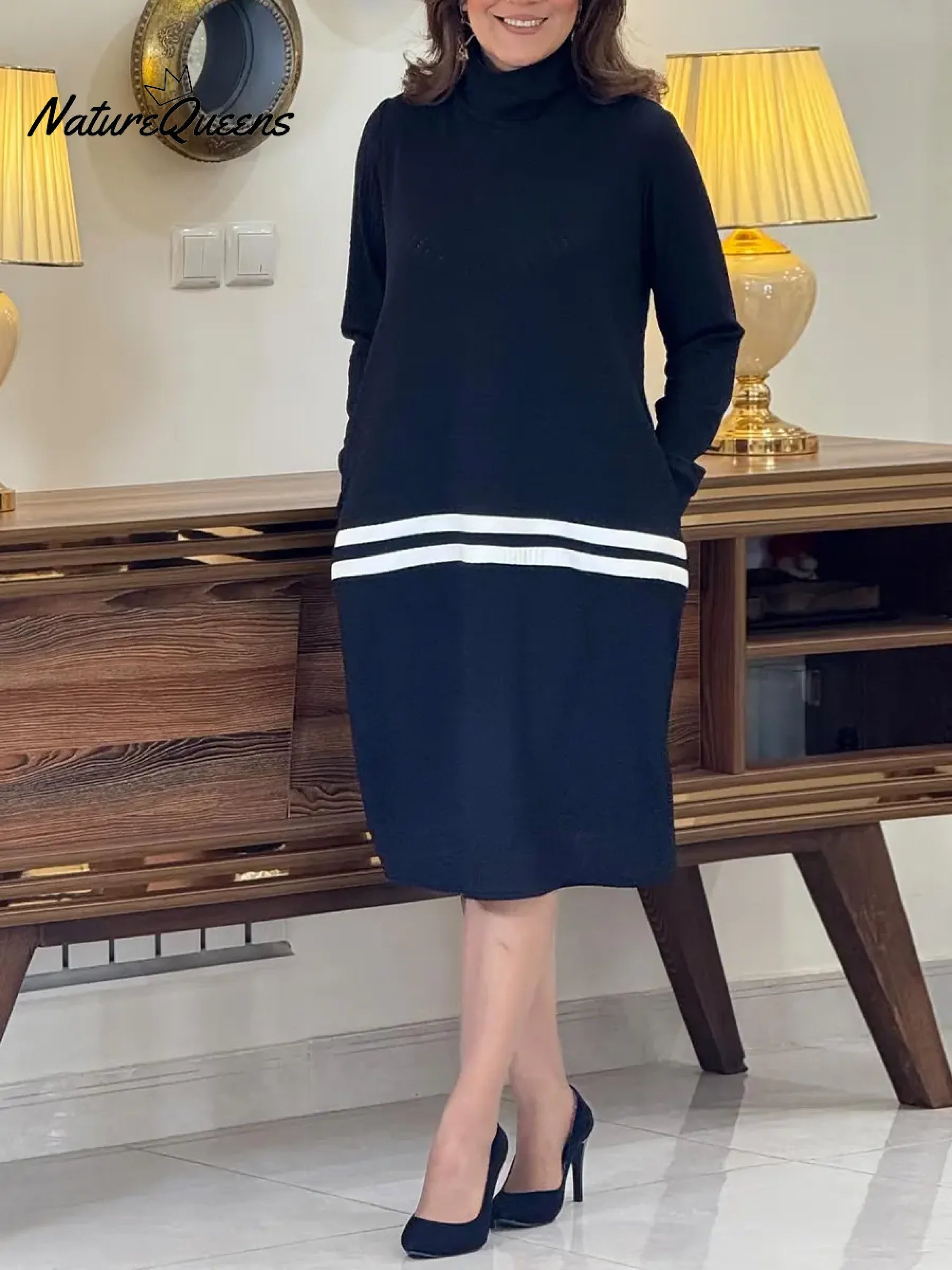 Women's Stand Collar Long Sleeve Casual Loose Knit Dress