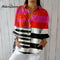 Women's Vintage Abstract Geometric Line Art Print Casual Linen V-neck Shirt